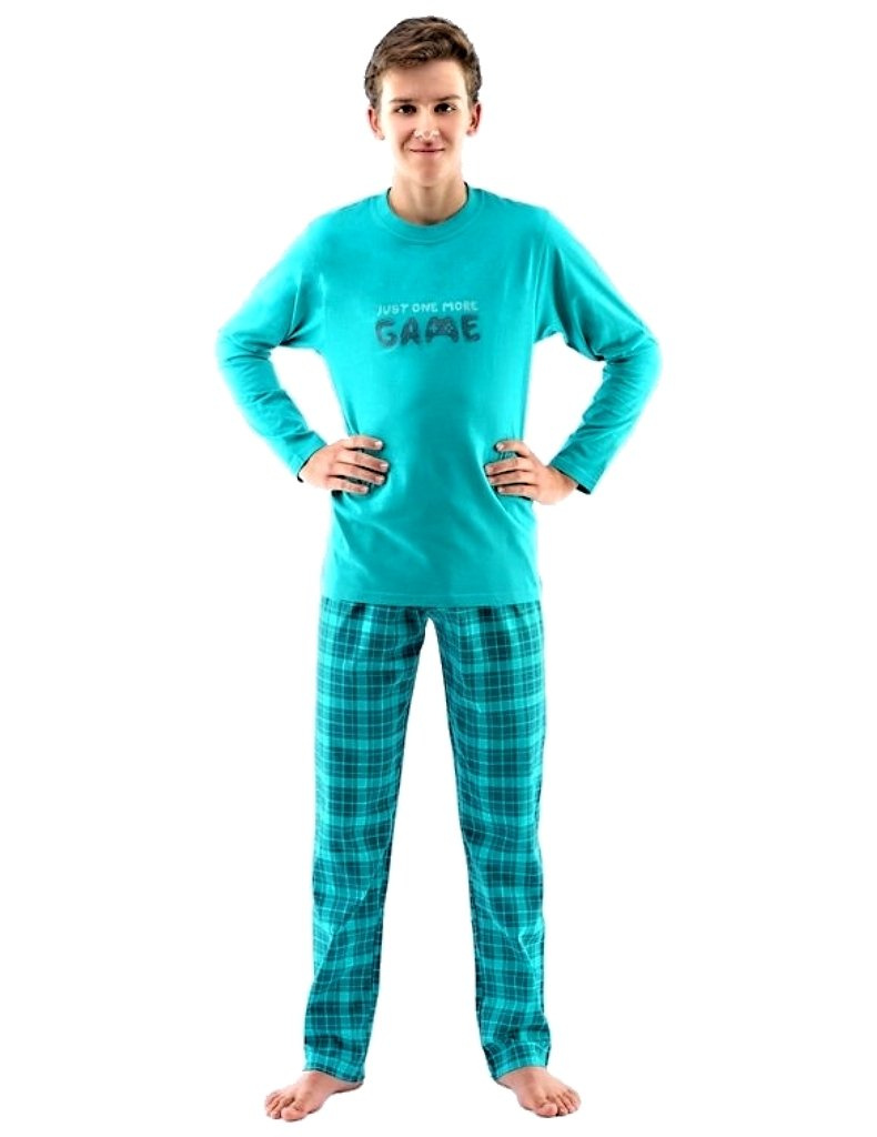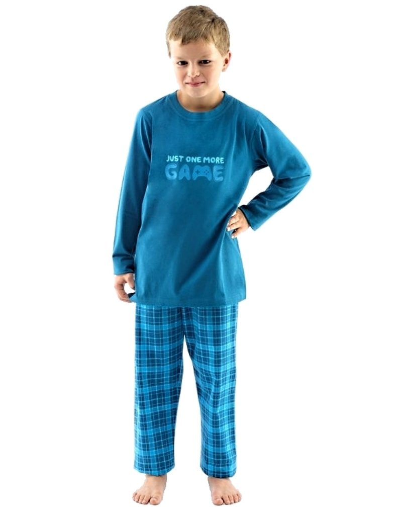 Nové chlapecké pyžamo je vyrobeno z kvalitní bavlny a obsahuje tričko s dlouhým rukávem a volné dlouhé kalhoty s atraktivním potiskem. Tričko má jednobarevný design s výrazným motivem, který zajišťuje pohodlí pro děti. Baleno v PP sáčku | vyrobeno v České republice | značka – Gina | chlapecké pyžamo, model 69001P | 100% Bavlna.