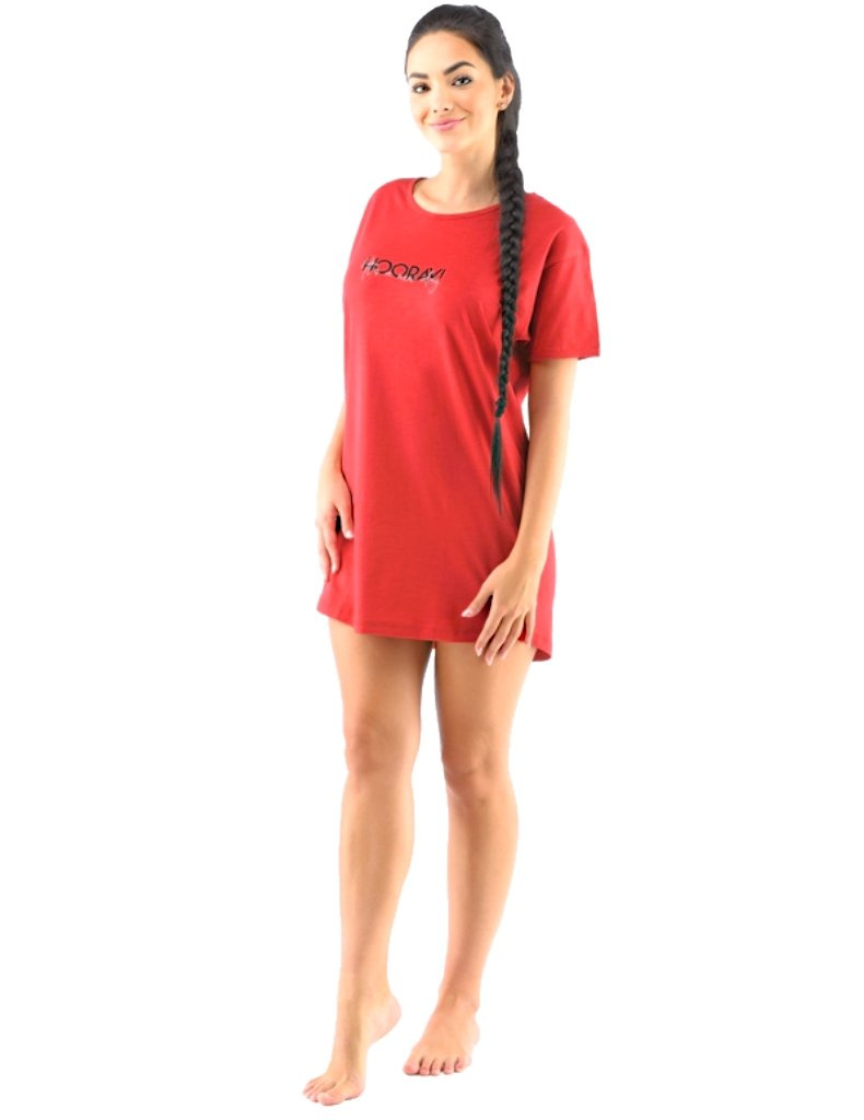Maxi triko s krátkým rukávem, dámská šitá noční košilka. Sexy triko je jednobarevné s větším solitérem na prsou. Prádlo z tohoto materiálu je vhodné pro každodenní nošení i jako domácí oblečení. Baleno v PP sáčku Gina | vyrobeno v České republice | Maxi triko – krátká noční košilka 19118P | materiál - 100 % Bavlna.