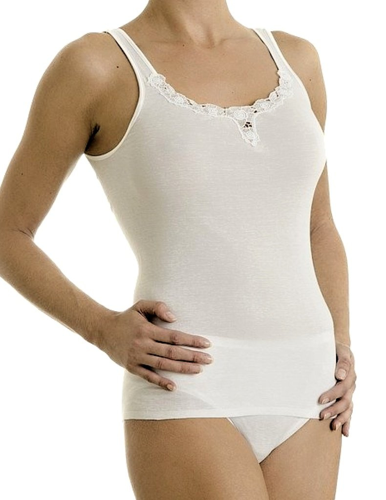 Dámská košilka model 083926 Body Feeling od Pleas je vyrobena ze 100 % bavlny, bezešvá a ideální na každodenní nošení. Obsahuje krajkovou vsadku a kvalitně zakončenou dolní část pro větší komfort. Více informací