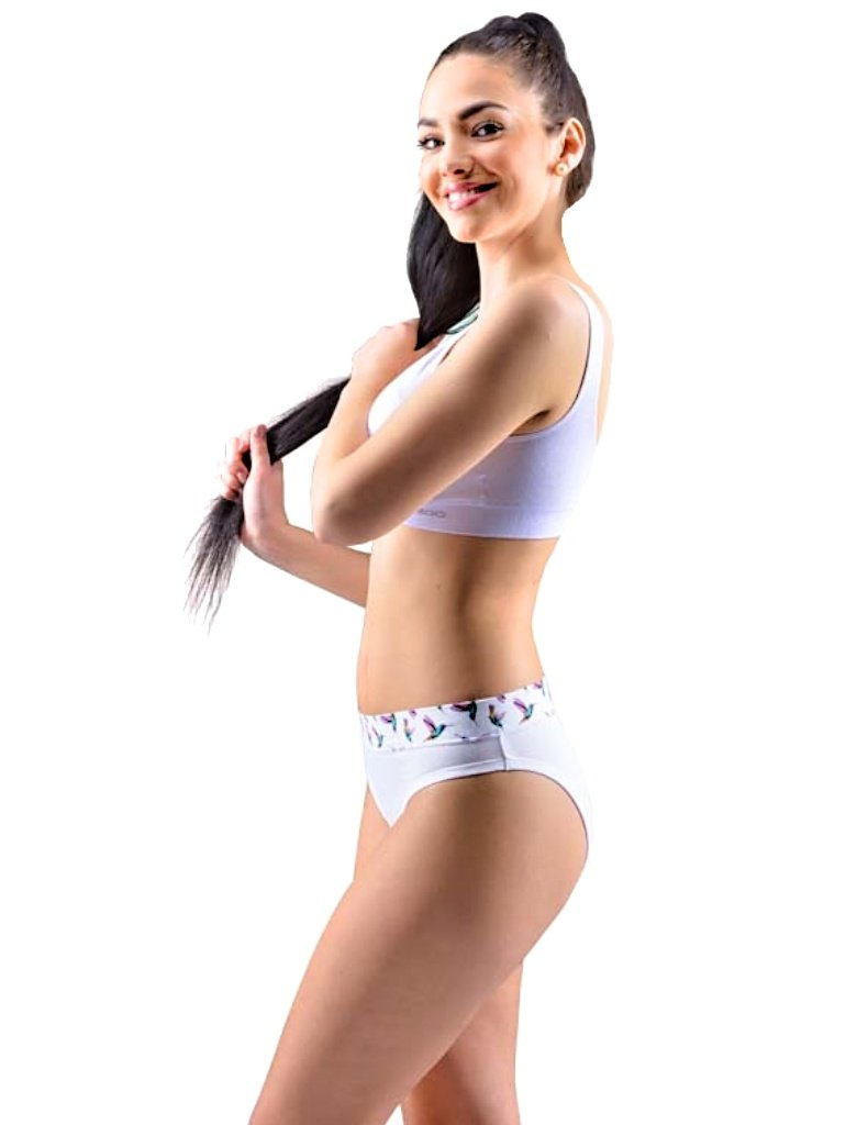 Dámské kalhotky Gina model 10274 kombinují elegantní styl s pohodlným širším pasem a úzkou obrubou nohavic. Zvířecí vzor přidává šmrnc, zatímco jednobarevné prvky umocňují moderní vzhled. Více informací