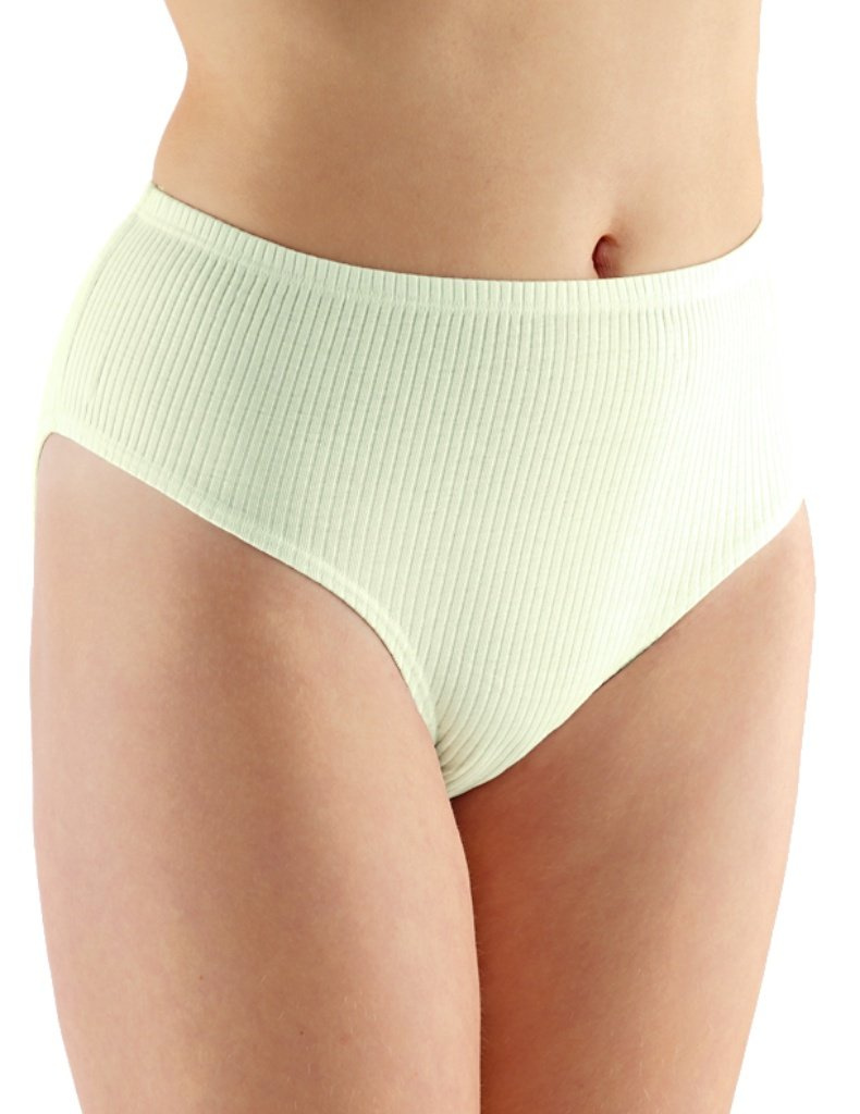 Dámské kalhotky klasické 11075 v balení 5 kusů s klasickým střihem a širším bokem, vhodné pro větší velikosti. Jsou z pohodlné žebrové látky ze 100% bavlny s úzkou gumou v pase a nohavicích. Více informací