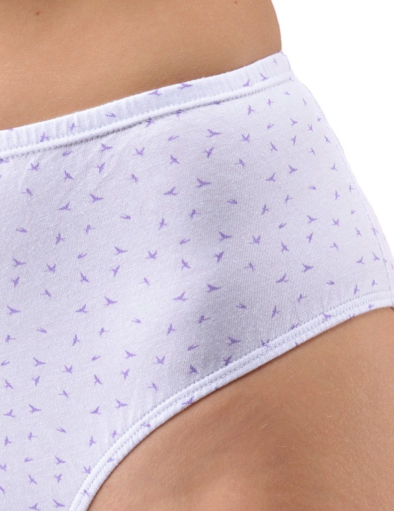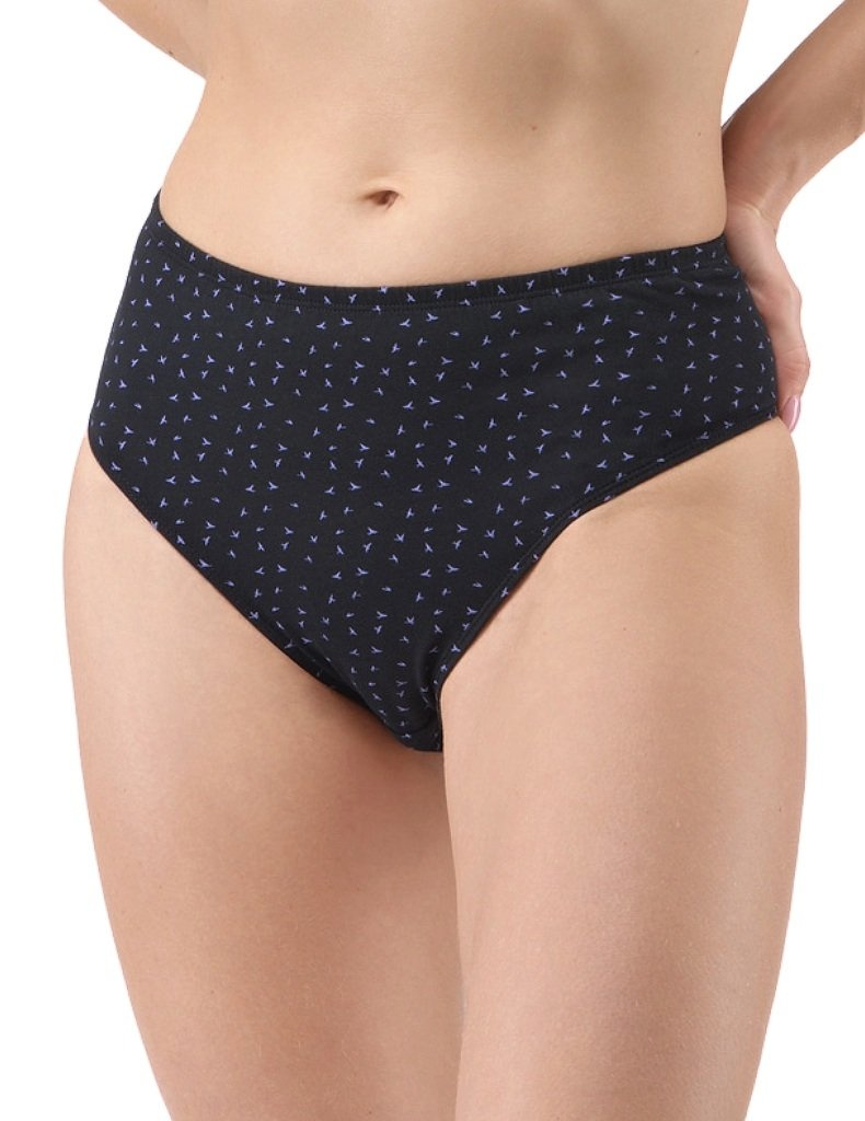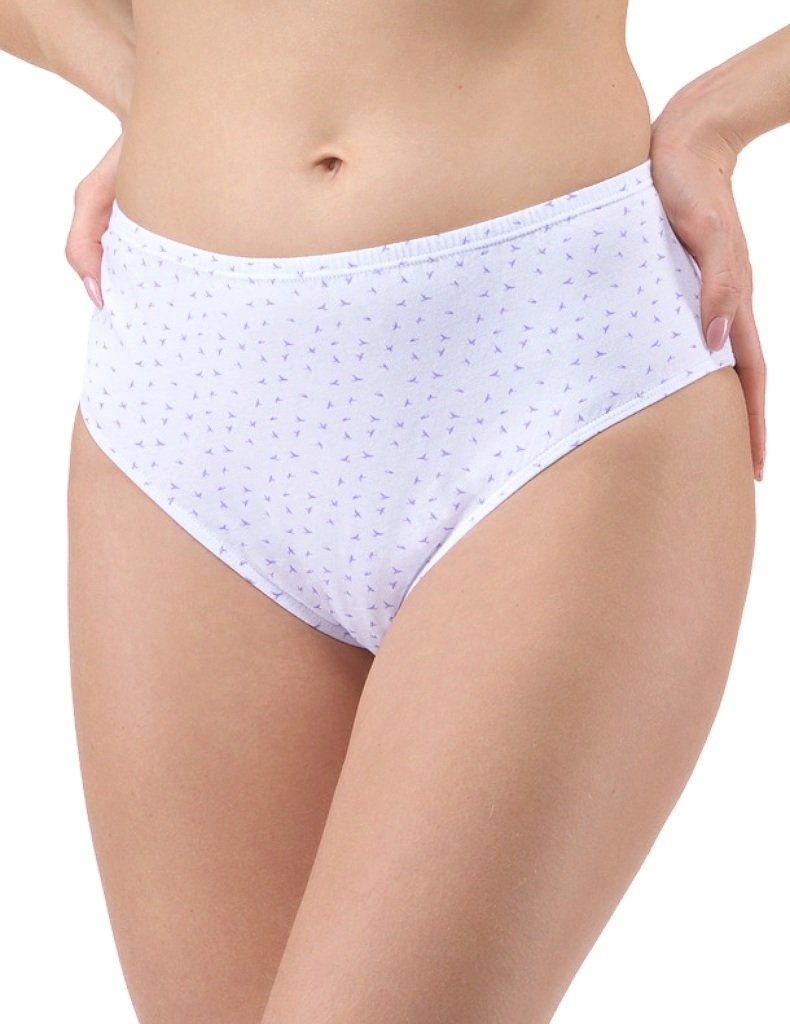 Dámské kalhotky klasické model 11093 ve větších velikostech, elegantní šité prádlo pro ženy. V pase a v nohavicích je všitá úzká pruženka. Moderní bavlněné spodní prádlo potištěné drobným vzorem.
