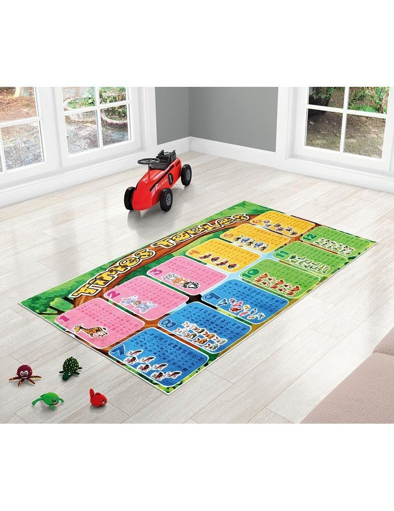 Dětský koberec 4050-313 s elegantním grafickým designem zelené násobilky. Koberec je praktický a bezpečný díky protiskluzovému povrchu a je ideální do vzdělávacího prostoru pro hraní dětí.