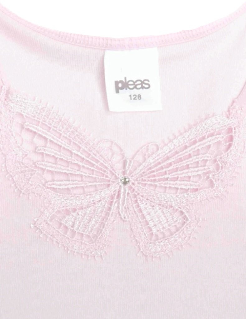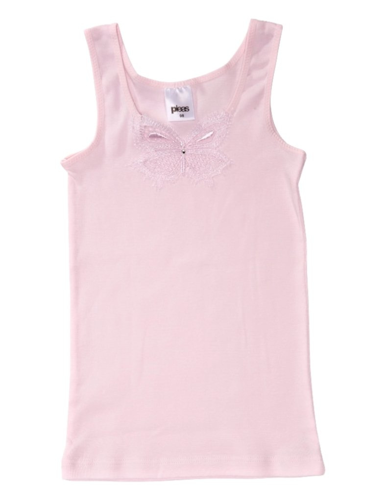 Dívčí košilka Essential 081025 značky Pleas je elegantní a praktická. Jednobarevný žebrovaný design s krajkovou vsadkou zvyšuje atraktivitu a je vyrobena z kvalitní 100% bavlny pro příjemný pocit.