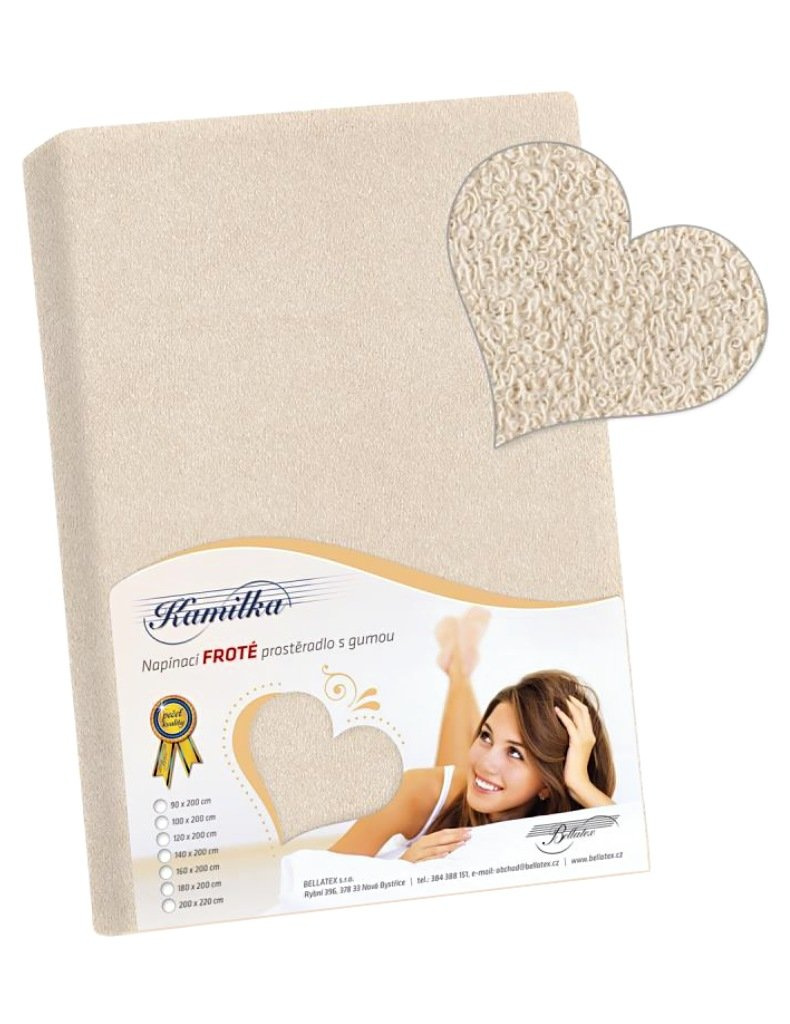Pohodlné froté prostěradlo PF-003 od výrobce Bellatex, v odstínu natural, je vyrobeno z přírodní 82 % bavlny a 18 % polyesteru, s gramáží 180 g/m² na matraci do výšky 20 cm, pro luxusní postel.