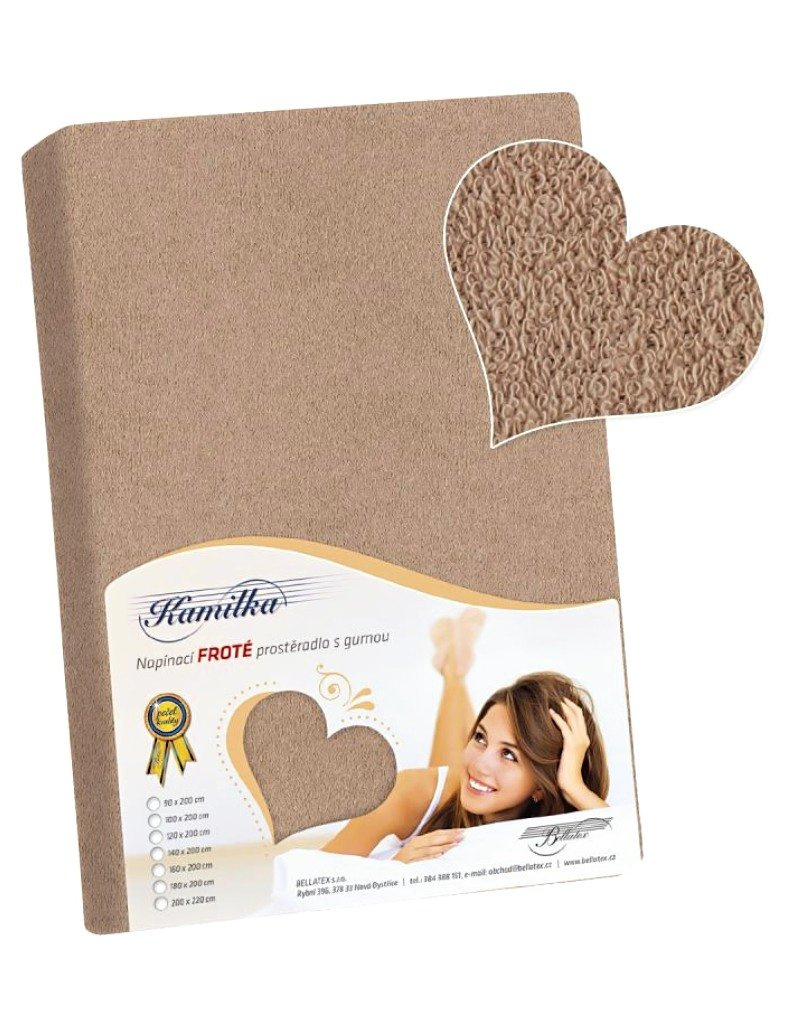 Froté prostěradlo PF-013 v kávové barvě od Bellatex pro matrace do výšky 20 cm. Jakostní prostěradlo je vyrobeno z přírodní 82 % bavlny a 18 % polyesteru s gramáží 180 g/m² a má měkký povrch.