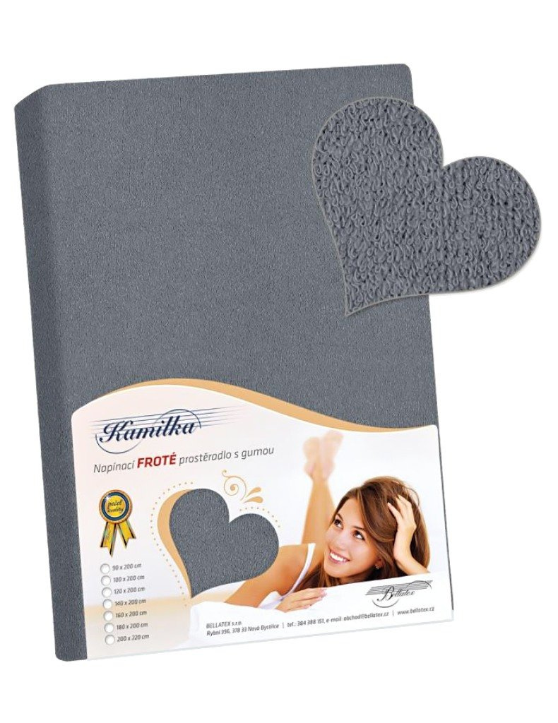 Froté prostěradlo PF-046 v tmavě šedé barvě, vyrobeno z 82 % bavlny a 18 % polyesteru, zajišťuje odolnost a údržbu. S gramáží 180 g/m² je vhodné pro matrace do výšky 20 cm a zvyšuje komfort ložnice.