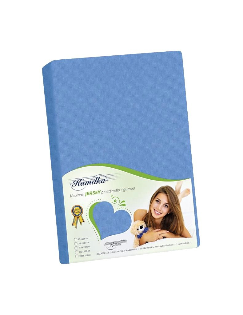 Jersey napínací prostěradlo PJ-025 v modré barvě od značky Bellatex, z vysoce kvalitní prémiové 100% bavlny, v gramáži 135 g/m². Elegantní ložní prádlo umožňuje našim zákazníkům pohodlí a spánek. Více informací