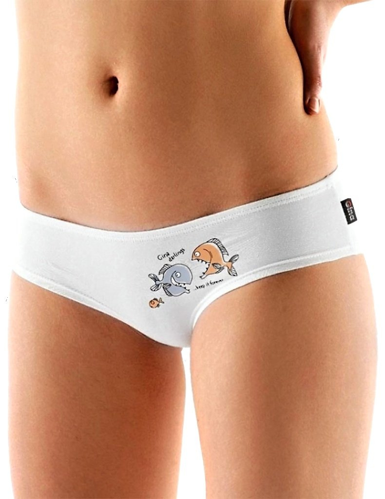 Dámské bokové kalhotky v doprodeji V-14025 od značky Gina v dárkovém balení. Toto elegantní šité spodní prádlo ve francouzském střihu, zdobeno obrázkem na přední části. V pase je použita úzká pruženka pro pohodlné nošení.
