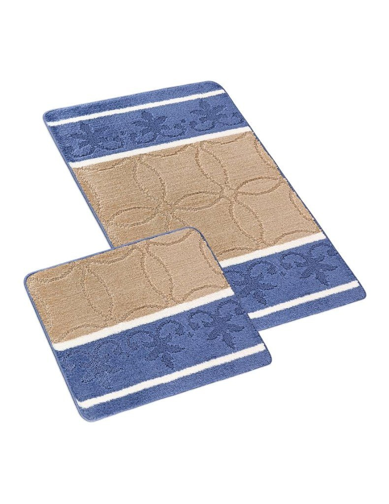 Doporučujeme sadu koupelnových předložek Bany, kolekce Ornament v elegantních béžových a modrých odstínech, s protiskluzovou úpravou a nemají výsek pro stojatou toaletu. Předložky moderní a praktické využití.