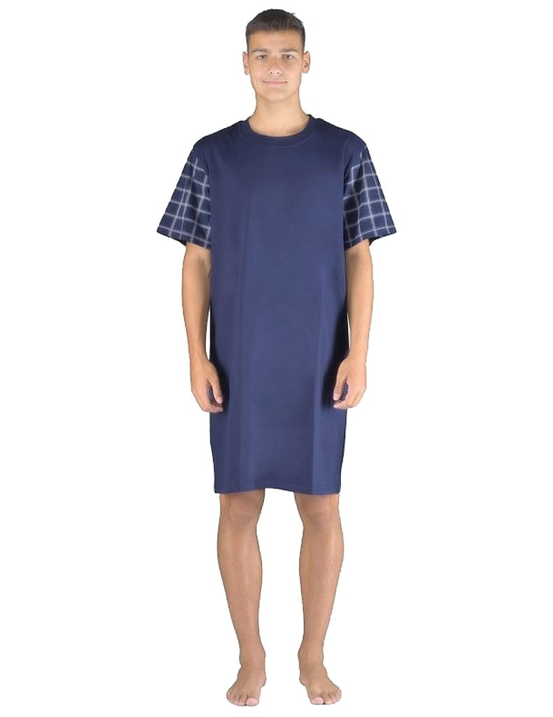 Představujeme elegantní pánskou noční košili s krátkým rukávem z jemného bavlněného úpletu, dostupnou v atraktivních barvách a moderním károvaném vzoru, která zajišťuje pohodlí a teplo během spánku.