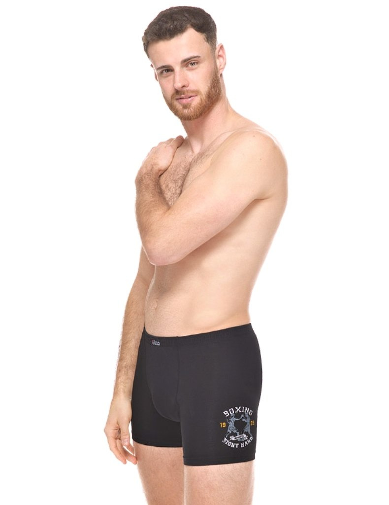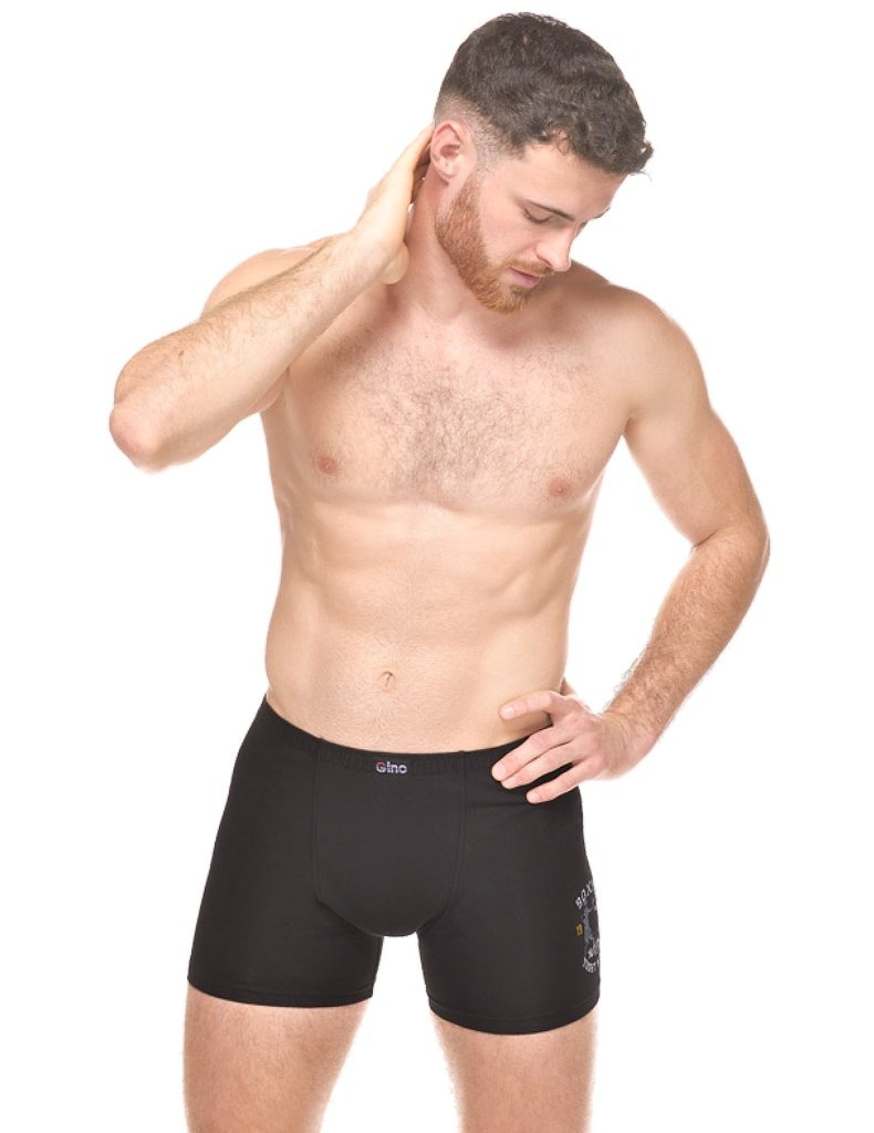 Pánské boxerky 74177 od značky Gina mají dlouhou nohavičku, členěný zadní díl se dvěma švy a větší tištěný obrázek na boku. Jsou vyrobeny z bavlněného úpletu s elastanem, což zajišťuje přizpůsobivost.