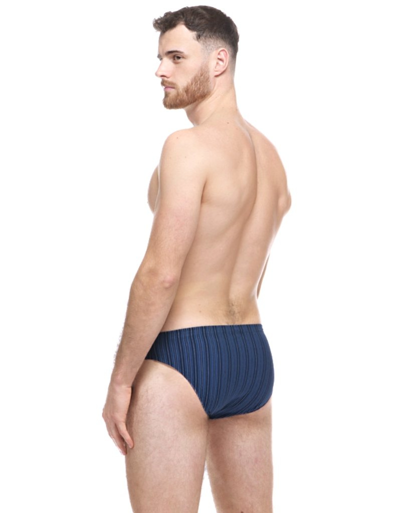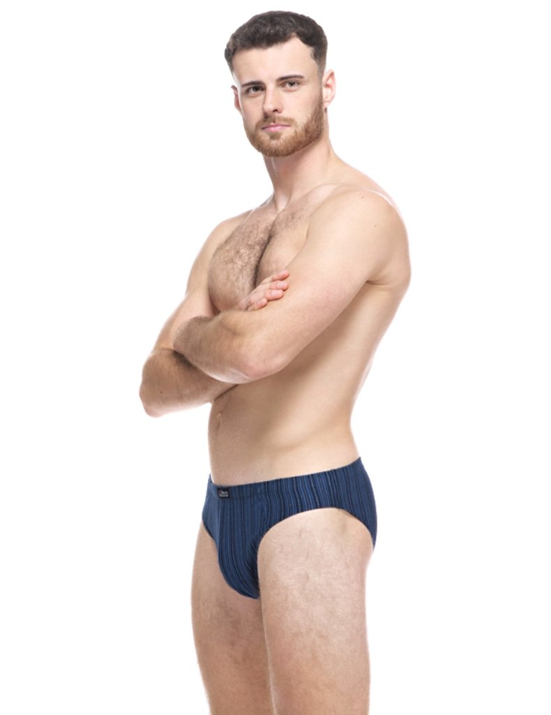 Pánské slipy model 70074 mají úzký střih a elegantní proužkovaný vzor. Z kvalitní směsi modalového vlákna, bavlny a elastanu, které jsou komfortní a přizpůsobivé, ideální na sport a relaxaci.