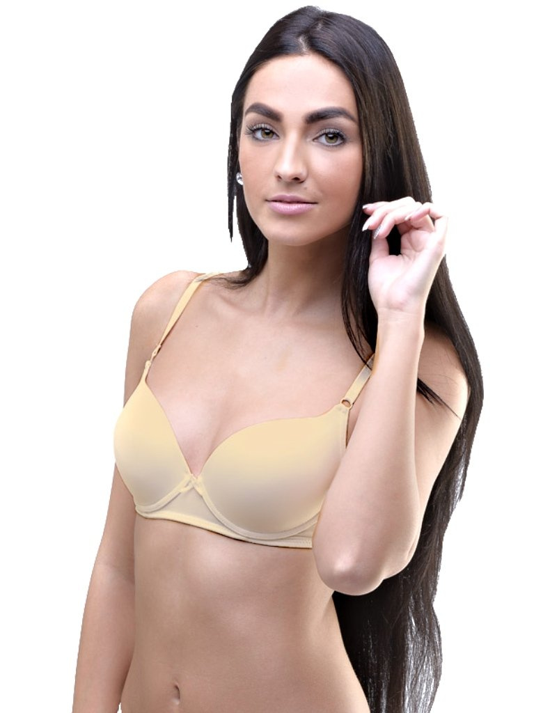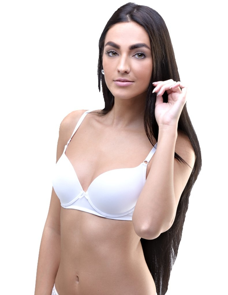 Podprsenka s kosticemi a lisovanými košíčky, dámské šité prádlo. Košíčky i zadní díl jsou hladké. Ramínka mají variabilní možnost nastavení (klasicky, do kříže, za krk). Podprsenka je jednobarevná. Zapínání je třířadé na 2 háčky. Baleno v krabičce Gina | vyrobeno v České republice | podprsenka hladká 17009P | materiál - 92 % Polyamid 8 % Elastan.