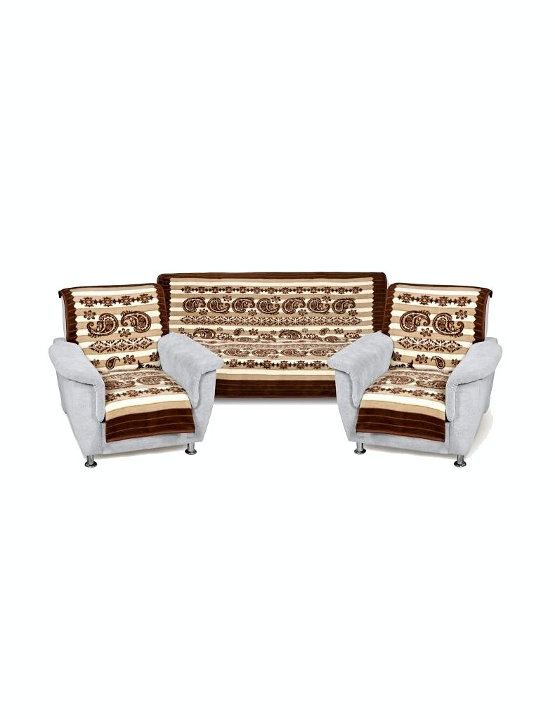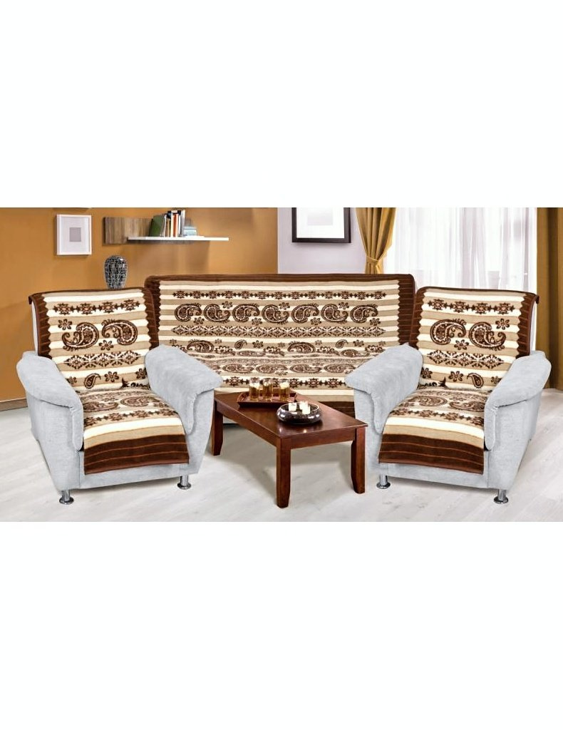 Potah na sedačku Karmela 8982-354 je oboustranný dvoubarevný potah 3+1+1 v béžové a hnědé, vyrobený z 86 % akrylu, 7 % bavlny a 7 % polyesteru (450 g/m²). Napínací gumy dokonalé přilnou k povrchu.