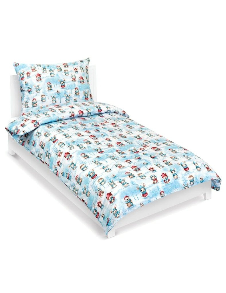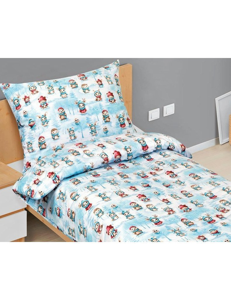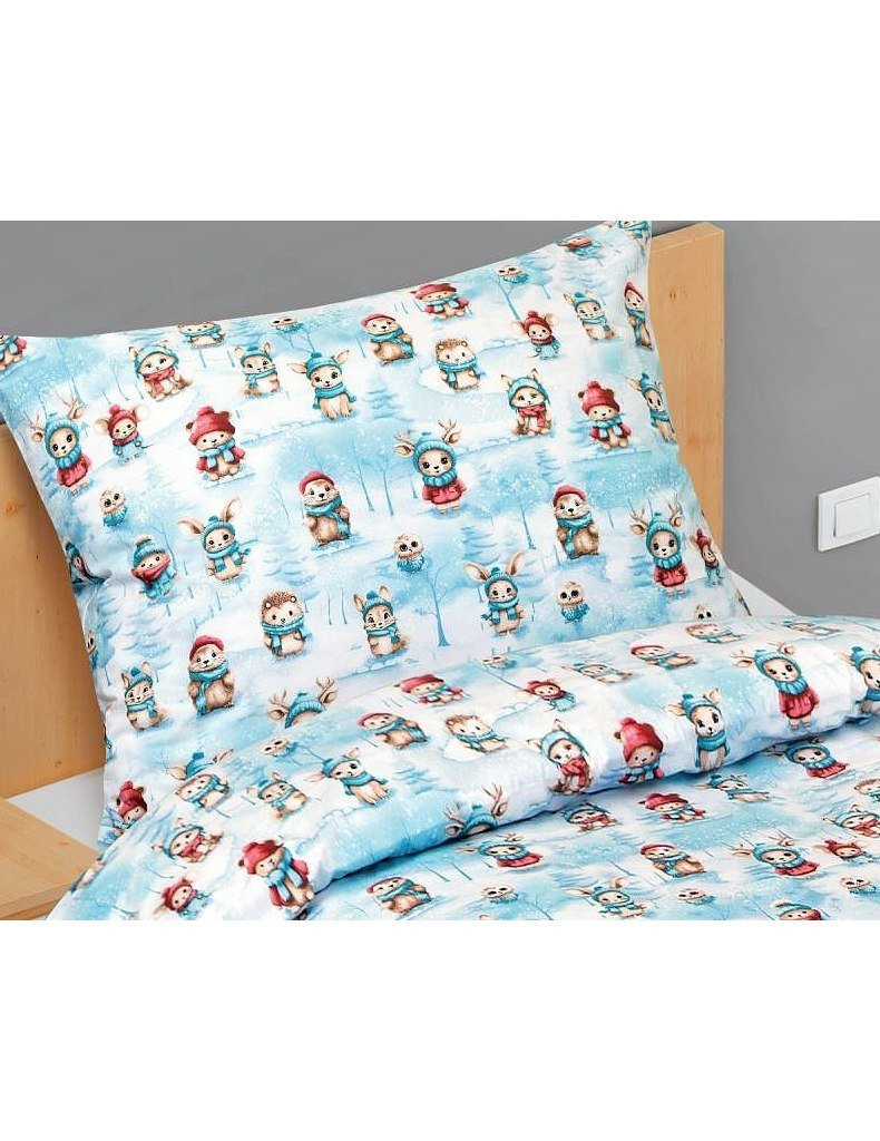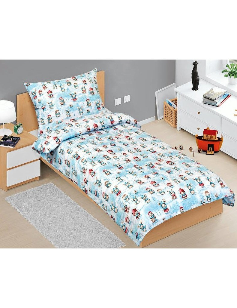 Lůžkovina je balena do obalu z PP a papírové spony | značka - Bellatex | vyrobeno v České republice | bavlněné povlečení, model Zvířátka v zimě 90/CH47 | barevné odstíny – bílé a modré | 100% Bavlna.