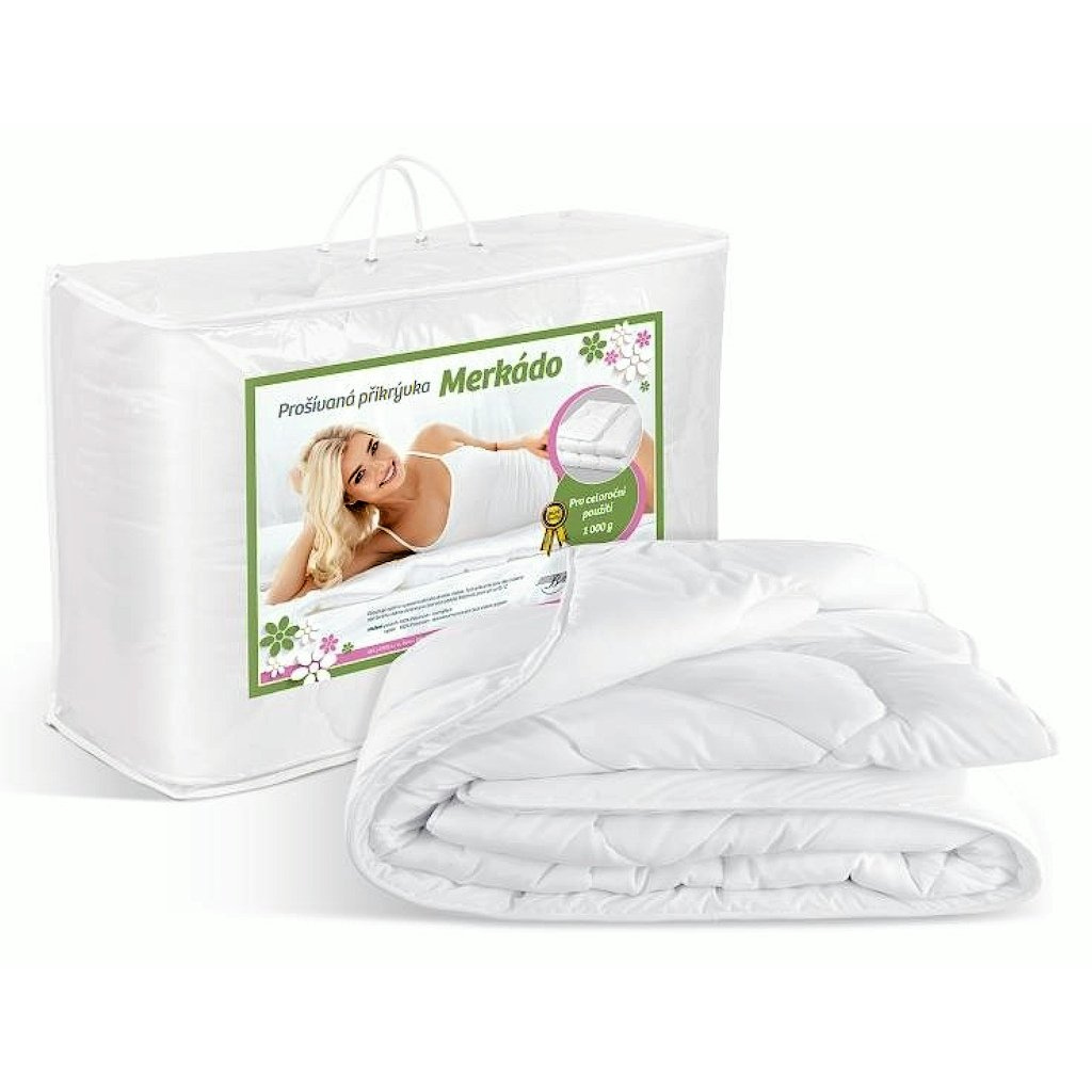 Kvalitní antialergická přikrývka Merkado z dutého vlákna. Trendová prošívaná peřina velmi teplá a příjemná, převážně pro celoroční období. Rozměr 140x200 cm | 1000 g/m2 | povlak 100 % Polyester microfiber | výplň 100 % Polyester dutinkové vlákno pojené protialergické | doprava pouze PPL.
