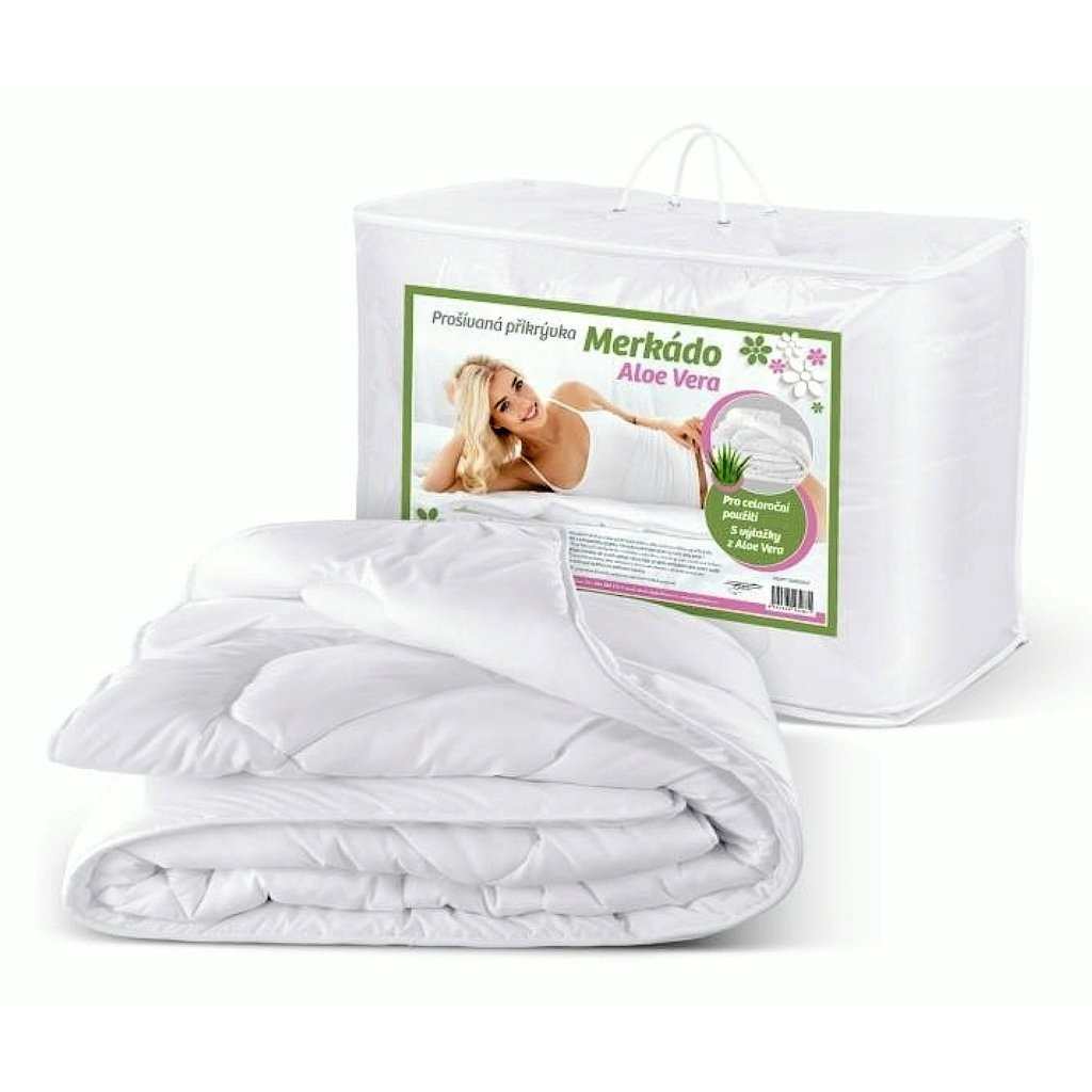 Trendová antialergická přikrývka Merkado Aloe Vera z dutého vlákna. Jakostní letní prošívaná peřina v bílé barvě s výtažky z rostliny Aloe Vera, která příznivě působí na lidskou pokožku a má schopnost zmírňovat bolest kloubů… Více informací