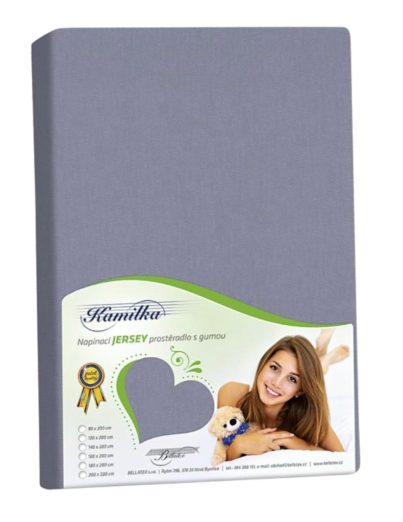 Jersey prostěradlo 1241-044 v modrošedé barvě, na matrace do výšky rohů 35 cm. Vyrobeno ze 100 % bavlny, je prodyšné a odolné s gramáží 135 g/m², hancinkramek.cz doporučuje pro běžné použití.