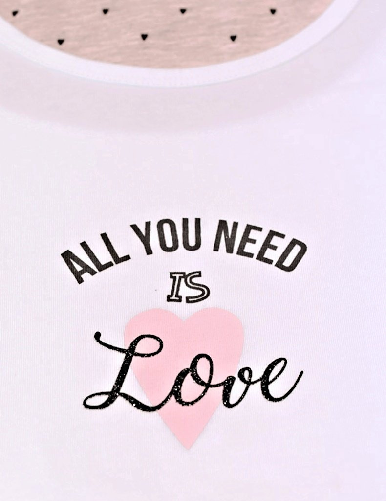 Pyžamo dámské doprodej V-19068 od značky Gina, šité noční prádlo pro ženy. Elegantní tričko s krátkým rukávem a krátké šortky. Moderní šortky jsou potištěné srdíčky, tričko je jednobarevné s větším obrázkem srdce a nápisem. Více informací