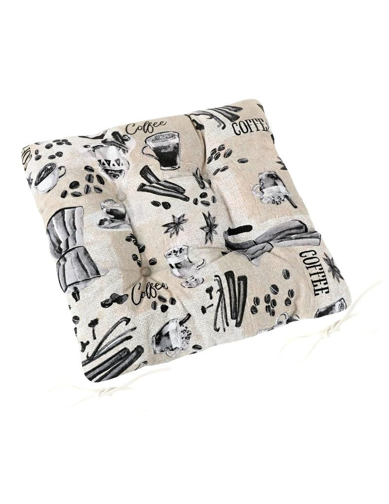 Sedák Ema kafíčko doprodej V-41/536. Elegantní prošívaný sedák ve čtvercovém tvaru 40 x 40 cm z pevné bavlněné látky, s tkanicemi na zavázání, povlak je napevno sešit s výplní. Moderní bytový textil do kuchyně a jídelny. Více informací