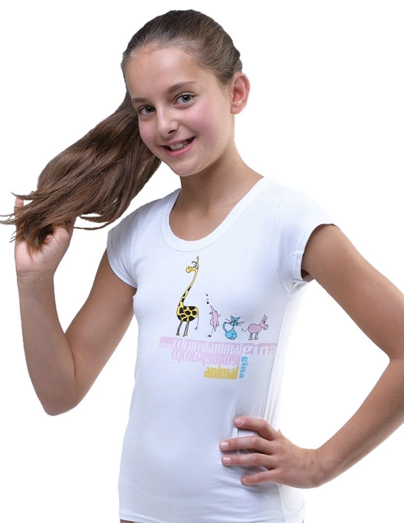 Detské tričko s krátkym rukávom, dievčenské šité oblečenie. Priekrčník je začistený lemovacím prúžkom. Dievčenské tričko je jednofarebné a na prednom časti je väčší obrázok. Balené v PP sáčku | vyrobené v Českej republike | značka Gina | dievčenské tričko Disco 28003P | 92 % Bavlna 8 % Elastan.