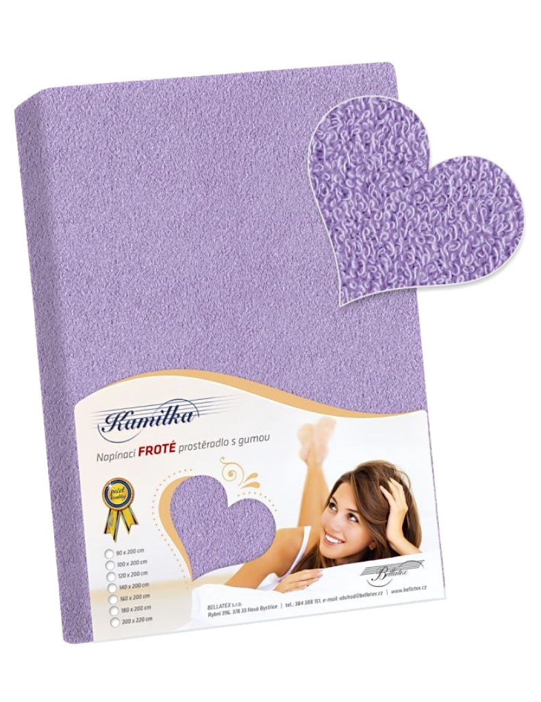 Plachta froté PF-019 vo svetlo fialovej farbe od výrobcu Bellatex je vyrobená z 82 % bavlny a 18 % polyesteru, s gramážou 180 g/m². Je ideálna pre matrac do výšky 20 cm a ladí s posteľným prádlem.
