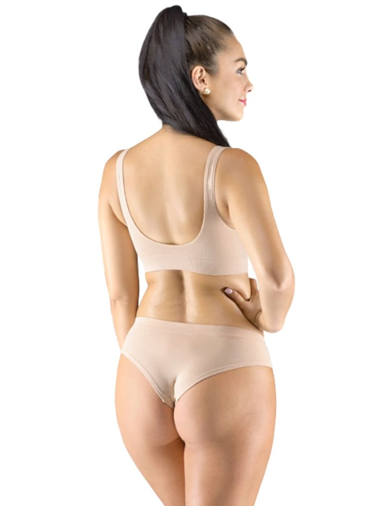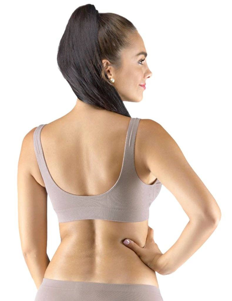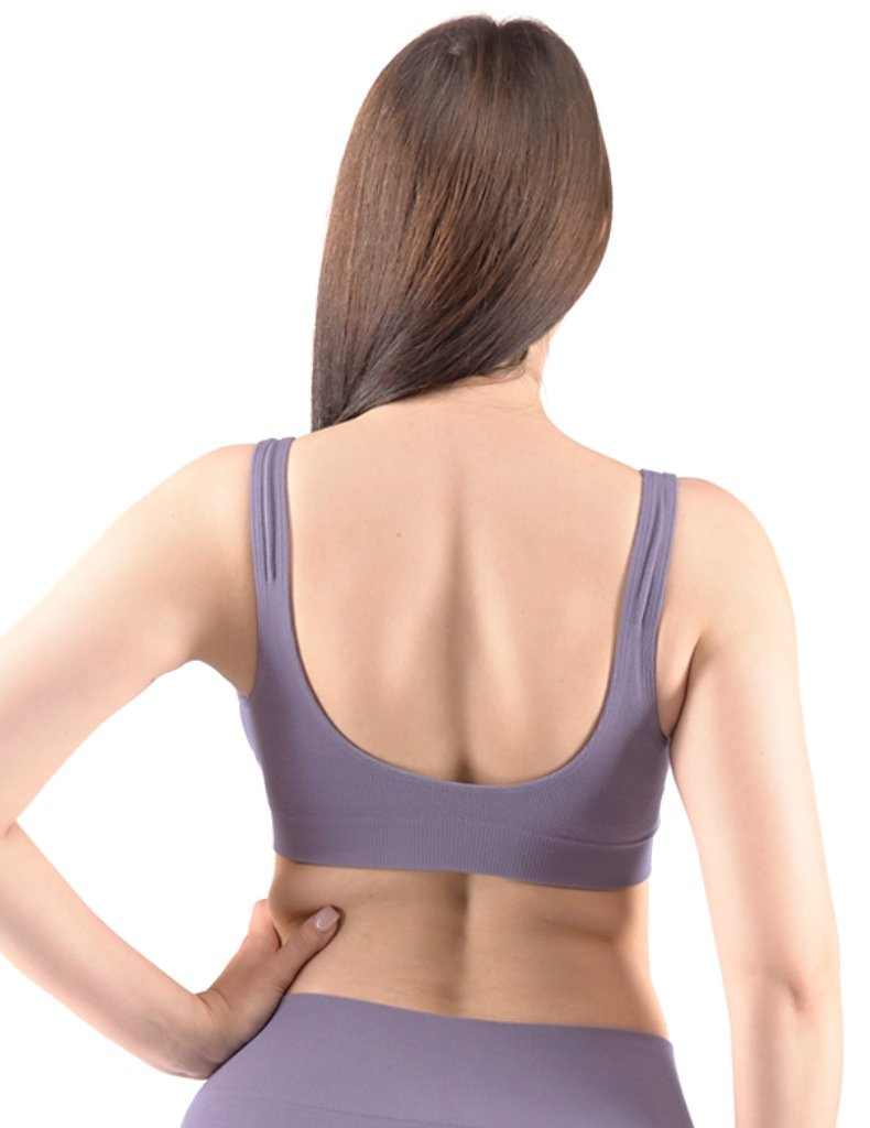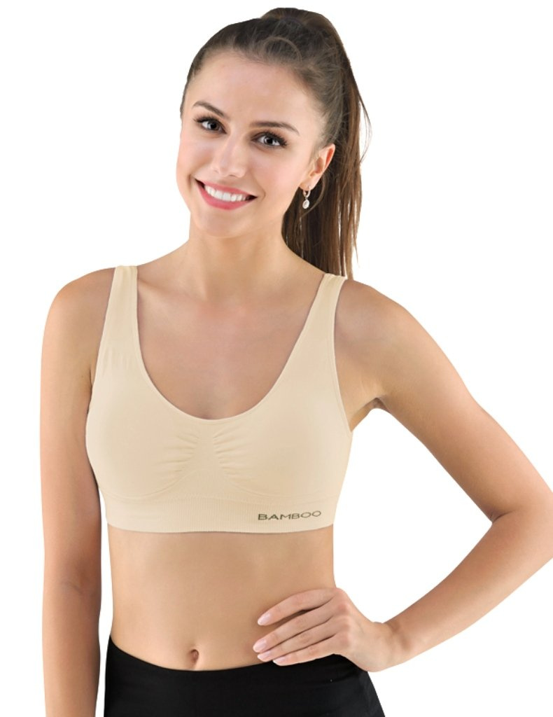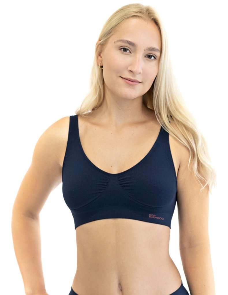Sportovní podprsenku bez kostice 07014 eco Bamboo od Gina tvoří vyjímatelné vycpávky a bezešvý jednobarevný bambusový materiál. Dvojitý přední díl s lisovanými košíčky a zadní díl v celku.