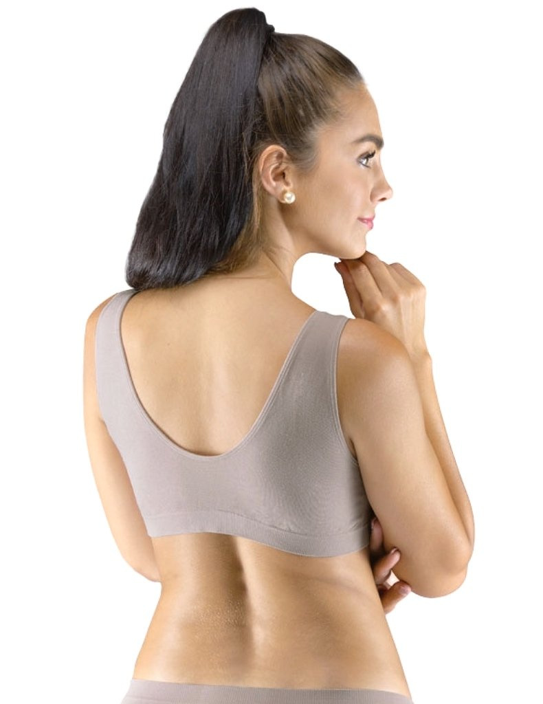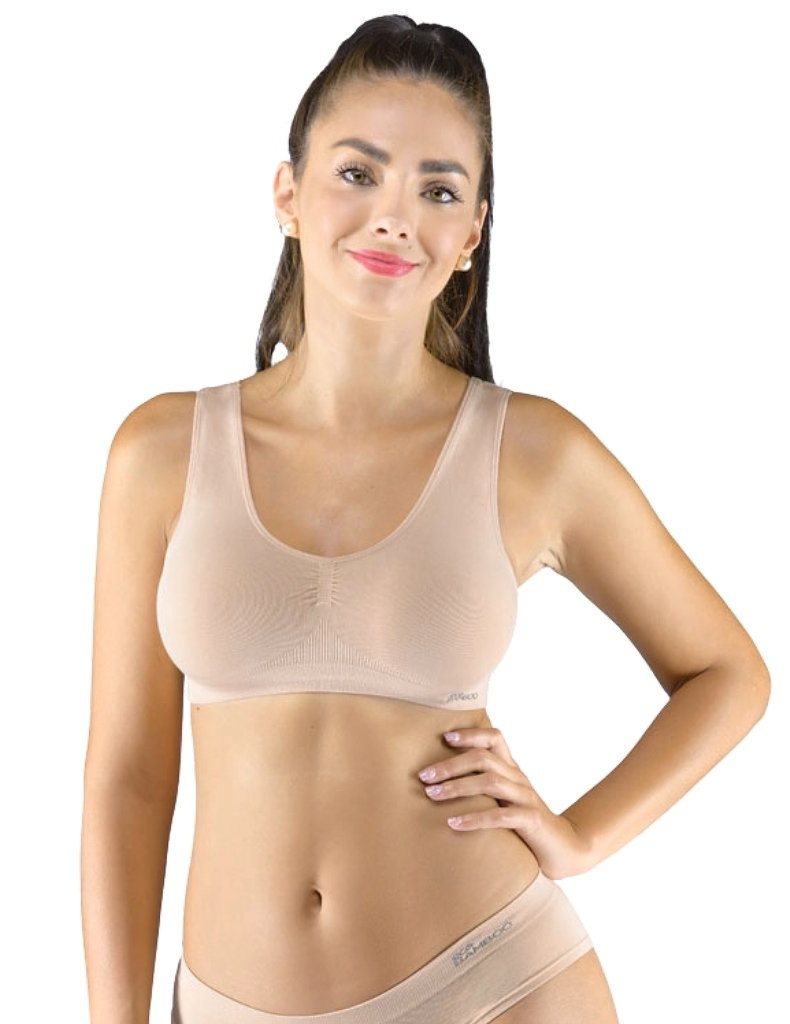 Sportovní podprsenka model 07016 má široká ramínka a je vyrobena z bambusové tkaniny. Je bezešvá, se zpevněným spodním okrajem a výstřihem lemovaným páskami, které přecházejí do ramínek. Více informací