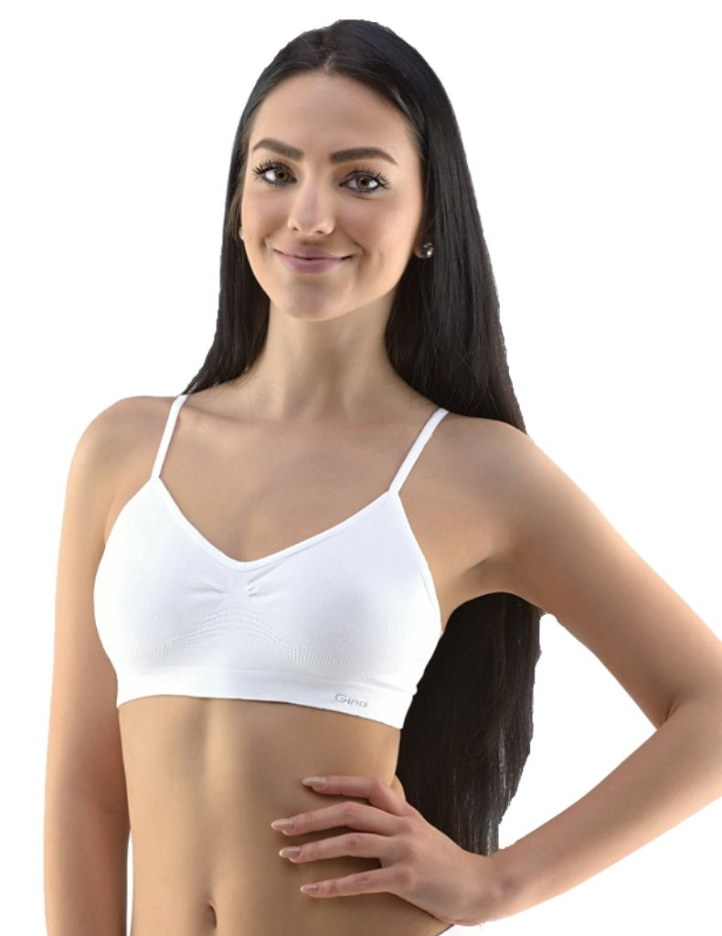Sportovní podprsenka model 07001 poskytuje pohodlí a podporu. Úzká ramínka umožňují volnost pohybu, bezešvý úplet snižuje tření a zpevněný spodní pás zajišťuje stabilitu a styl pro aktivní ženy.