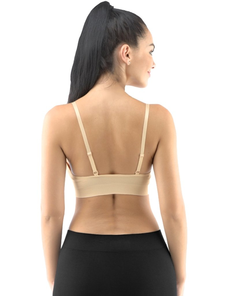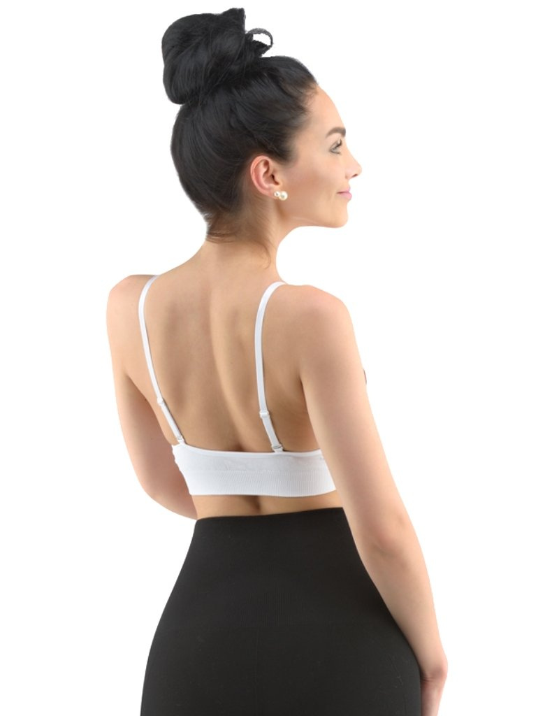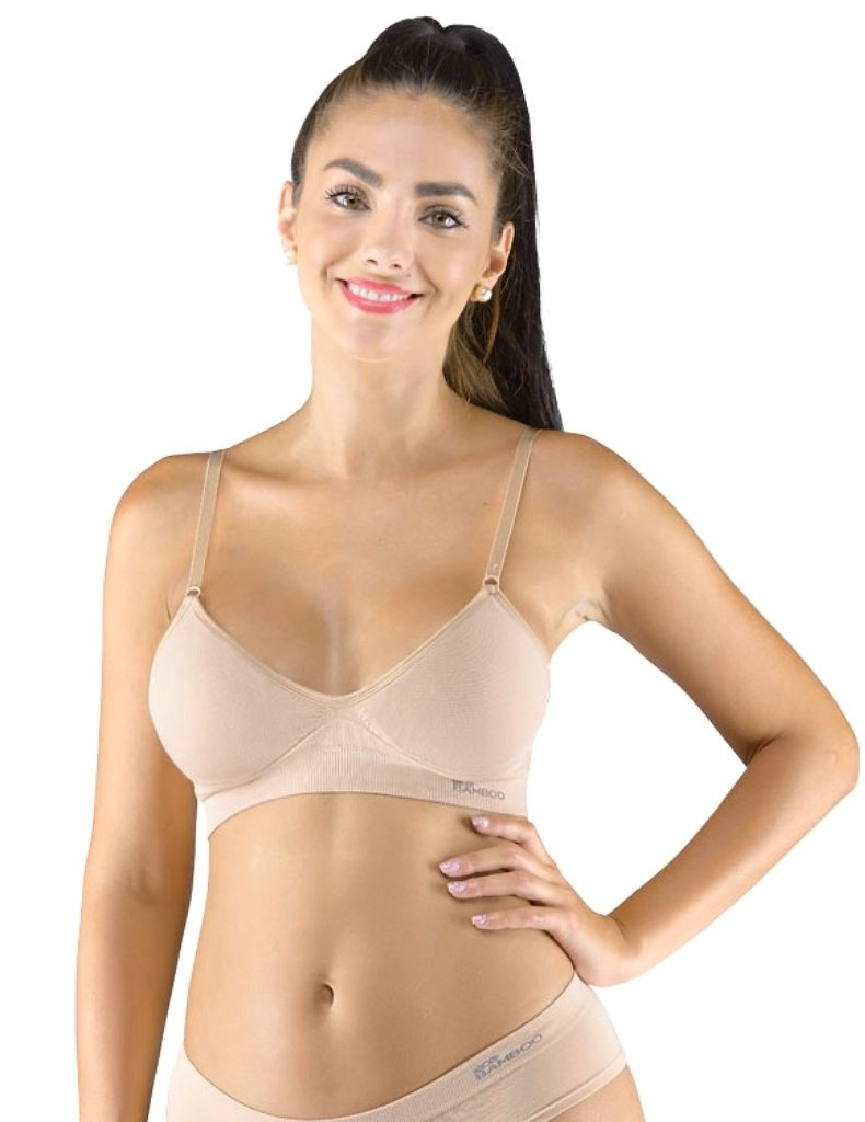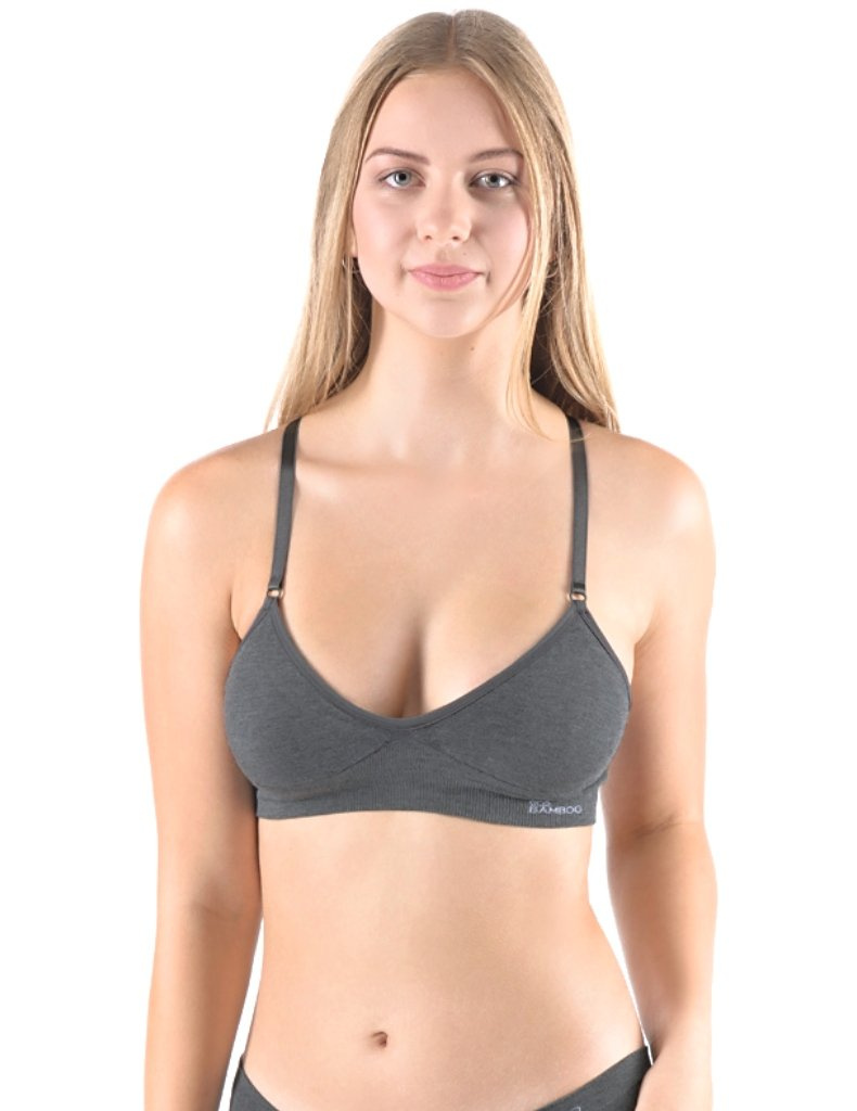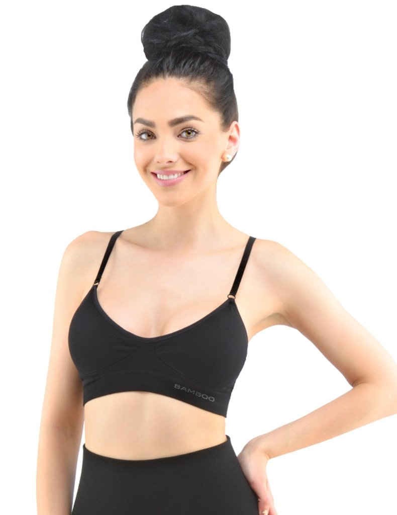 Sportovní podprsenka 07021 s vyjímatelnými vycpávkami a nastavitelnými ramínky. Bezešvé eco Bamboo prádlo, zesílený dolní kraj a lemovaný horní kraj. Dvojitý přední díl s košíčky, zadní díl v celku.